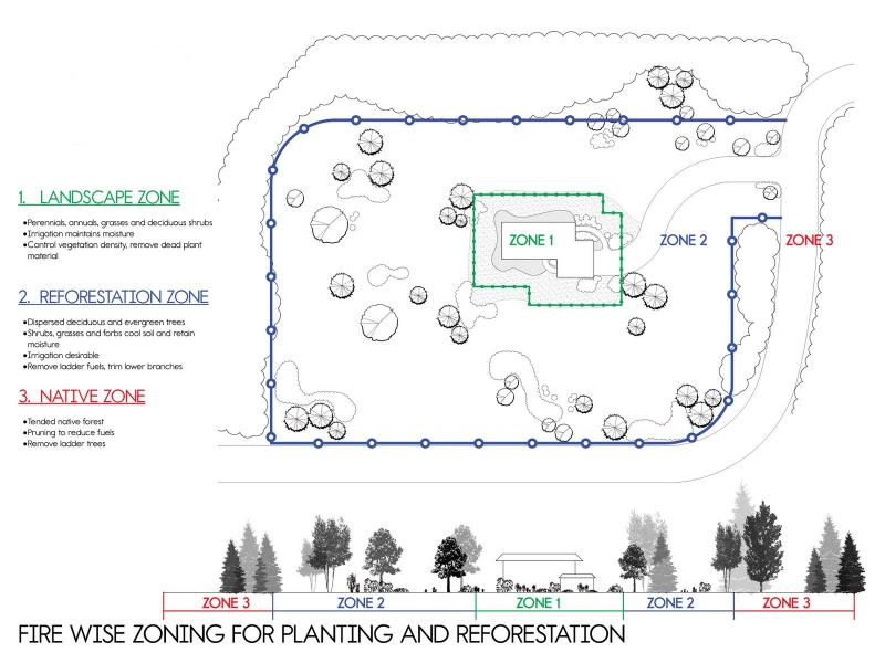 This defensible space reduces the risk that fire will spread from the surroundings to the structure and provides firefighters access and a safer area to defend it from.
