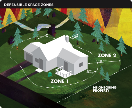 This space is needed to slow or stop the spread of wildfire and it protects your home from catching fire – either from direct flame contact or radiant heat. Defensible space is also important for the protection of the firefighters defending your home.